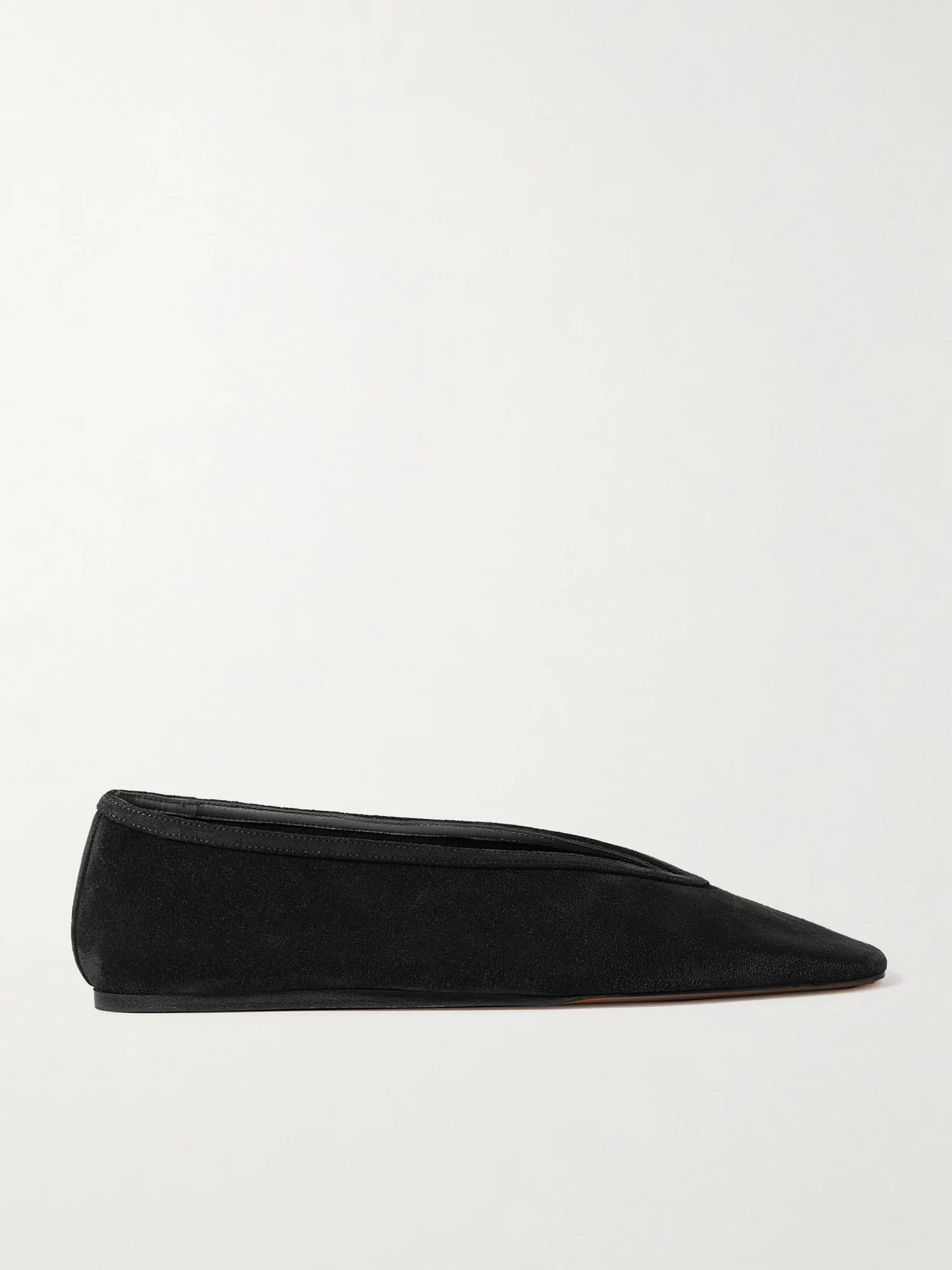 All of Le Monde Beryl's shoes are handcrafted in Italy using traditional techniques. These 'Luna' ballet flats are made from smooth suede and have comfortable flat soles with cushioned linings. The pointed vamps are a small but crucial detail that makes them especially chic.
