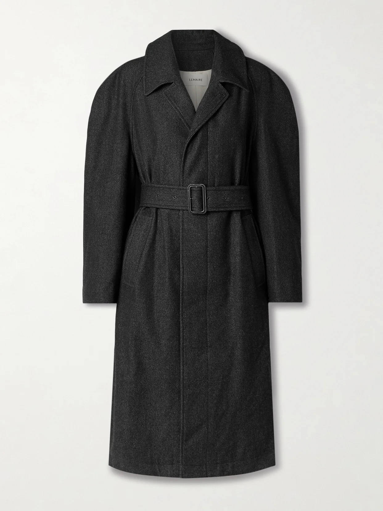LEMAIRE's Fall '25 collection features an array of sharp outerwear, including this coat. Tailored from a wool and cotton-blend, it comes in a versatile charcoal melange and has a relaxed shape emphasized by wide, gently curved sleeves. The optional waist belt cinches your frame. Lower-Impact Materials. This product is made using at least 50% lower-impact materials or ingredients. Find out more about our NET SUSTAIN criteria here.