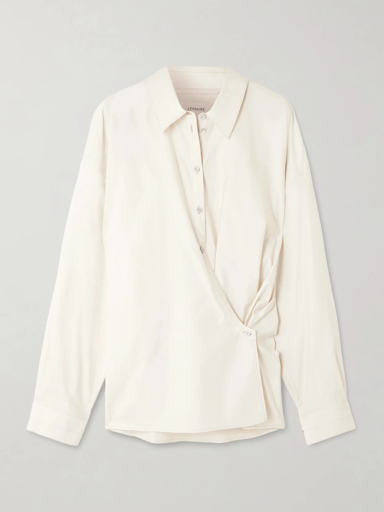 If you're looking to add an iconic staple to your wardrobe, LEMAIRE's shirt is definitely worth it. Part of the 'Twisted' family, it's cut from a washed cotton and silk-blend poplin and has a wrap front with a distinctive fastening that creates its structured shape. Tuck yours into tailored pants.
