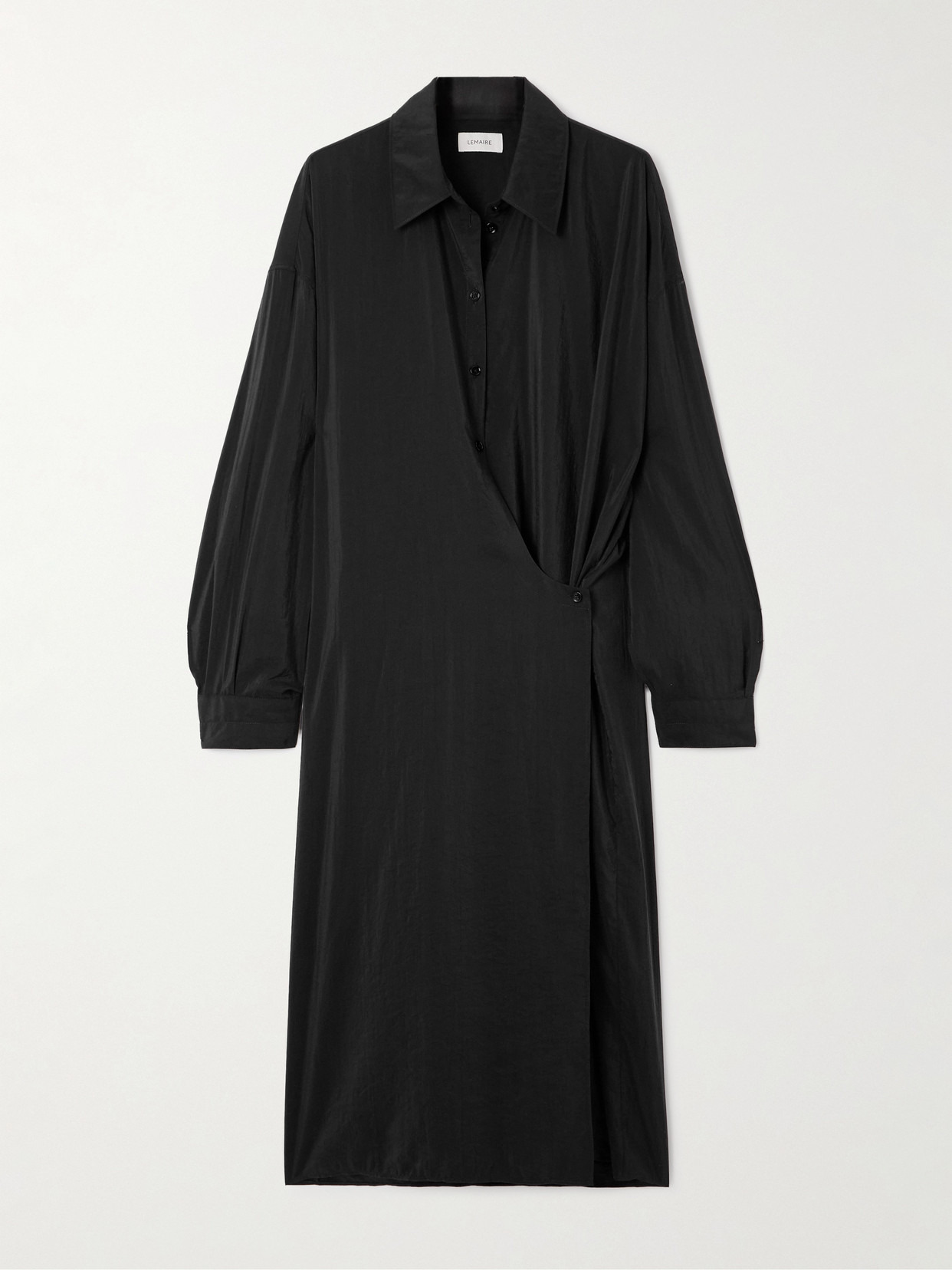 LEMAIRE's shirt dress twists at the waist, giving it a dynamic shape and beautiful drape. It's made from fluid washed silk-blend and has a wrap front.