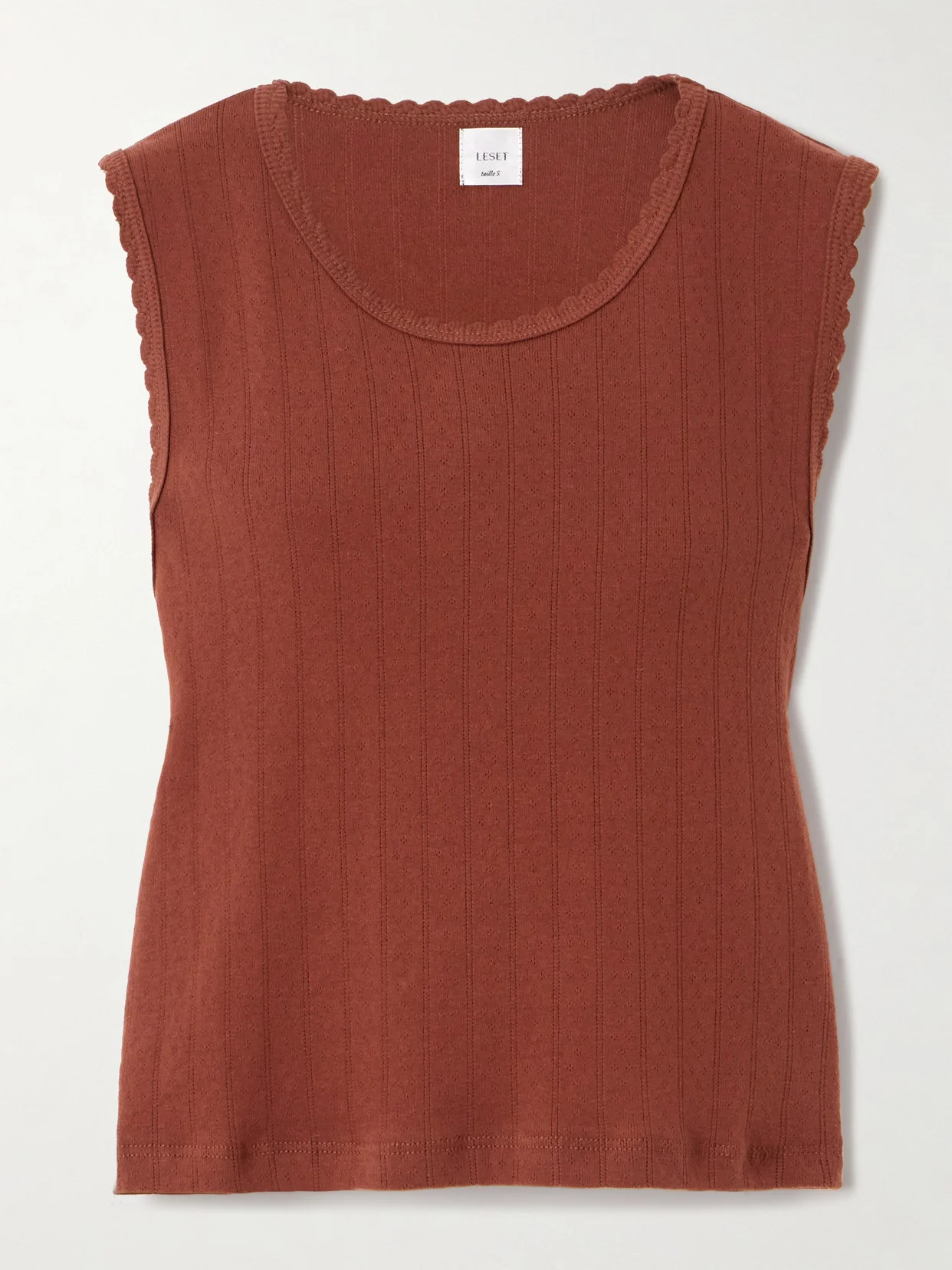 LESET's tank will underpin so many outfits. Made in LA, it's pointelle-knitted from soft, breathable cotton for a close fit and has romantic scalloped trims. Wear yours with jeans or the coordinating pants while relaxing at home.