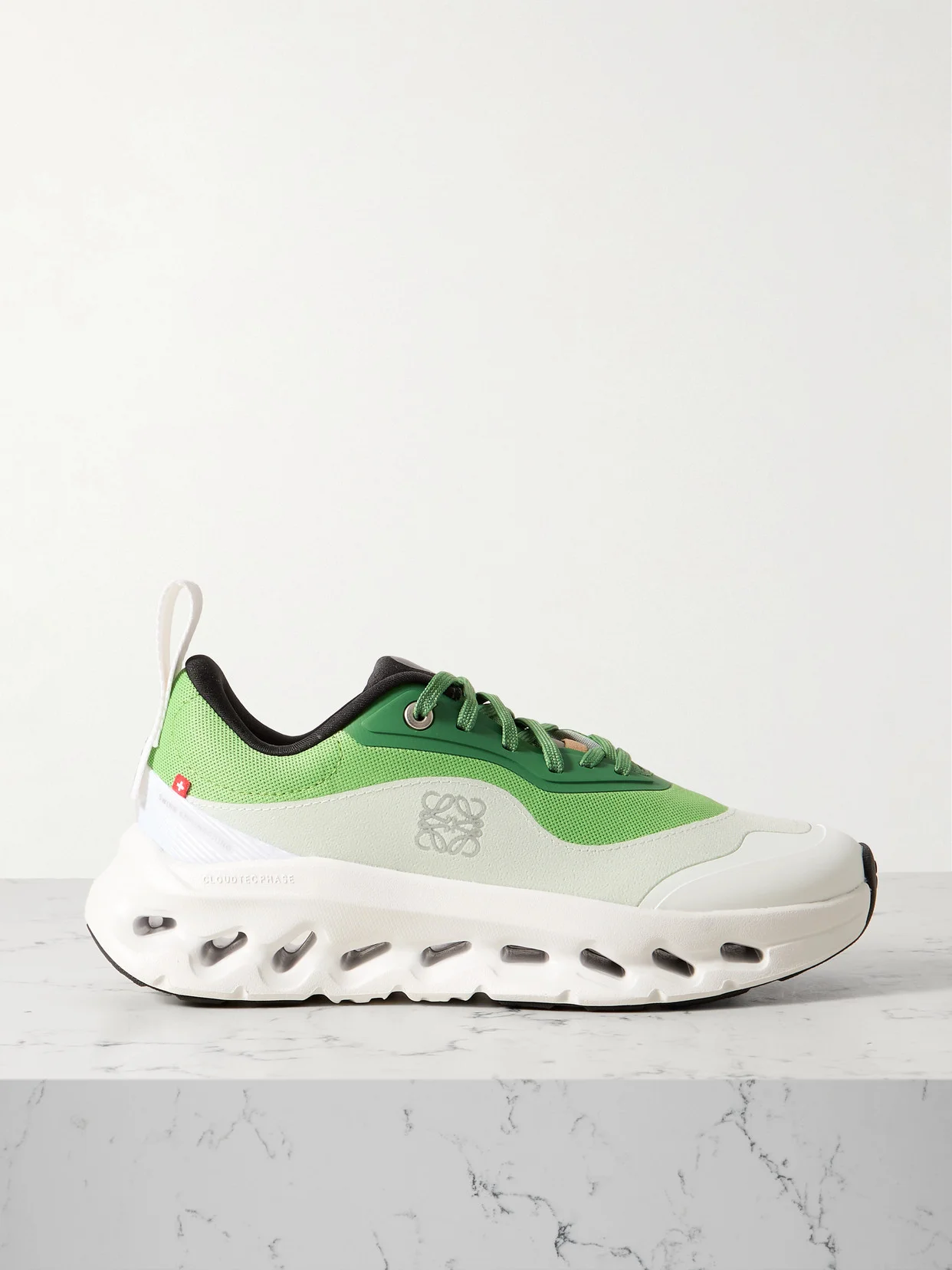 Loewe's artisanal flair meets ON's high-performance technology for this limited-edition collection. Made using recycled fibers and some stretch, these knitted 'Cloudtilt' sneakers are appliqued with both brands' logos at the sides and tongues.