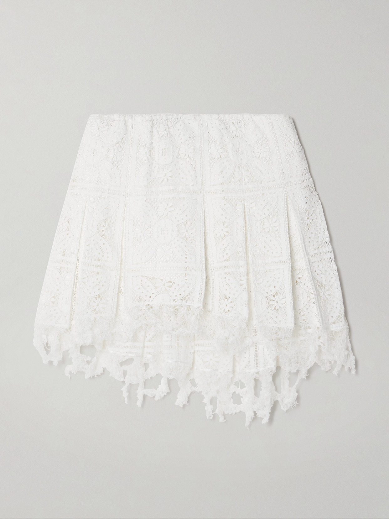 + Paula's Ibiza Frayed Pleated Broderie Anglaise Cotton-blend Jersey Mini Skirt