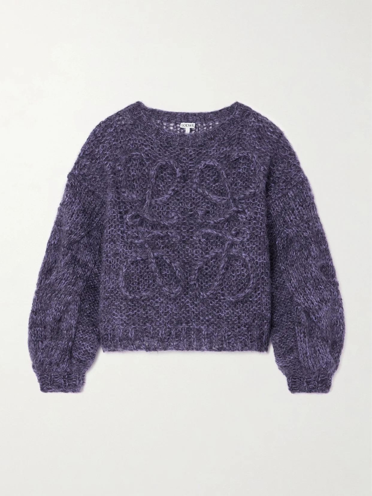 Anagram Embroidered Cable-knit Mohair-blend Sweater