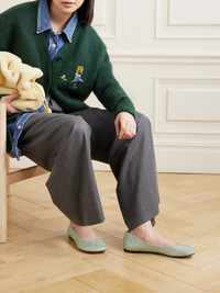 Loewe's ballet flats are made from soft suede that's meticulously dotted with light-catching tonal crystals, giving the casual style a glamorous touch. They're designed with the label's particularly round, asymmetric toe and set on a slight heel.