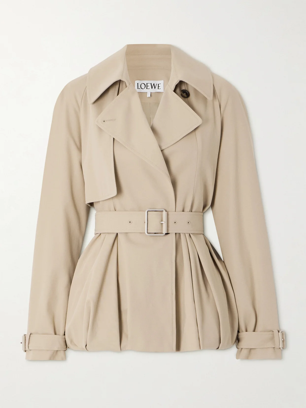 The inverted pleats and subtle bubble hem on Loewe's jacket makes it feel especially cool. Made from cotton-twill, it has classic trench coat-inspired detailing in the form of storm flaps and adjustable cuffs. Use the belt to cinch your frame.