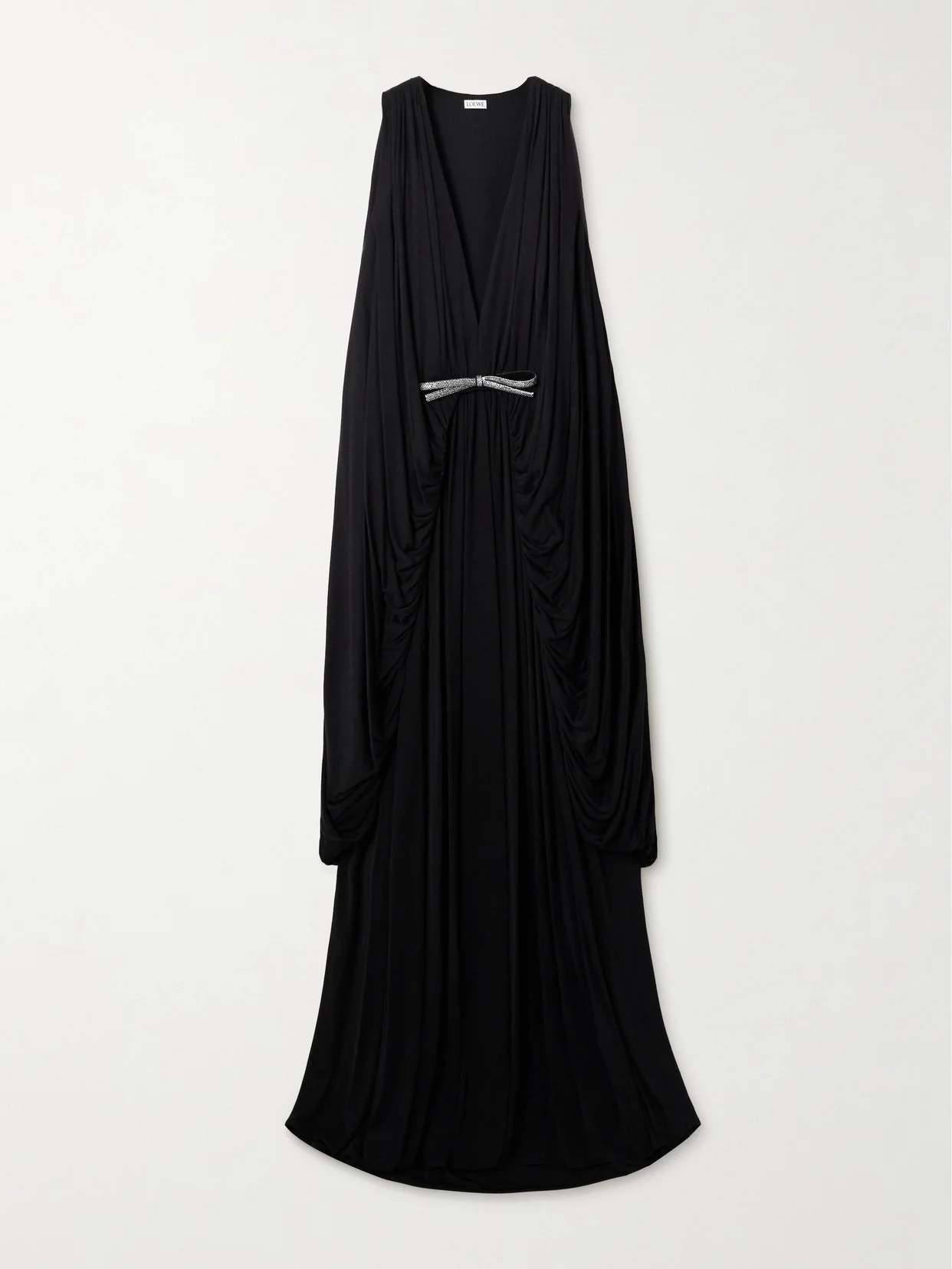 Loewe's gown exudes effortless elegance, thanks to its fluid, beautifully draped design. It's made from cotton-jersey that's gathered to create soft pleats throughout and features a crystal-encrusted bow below the deep V-neckline.