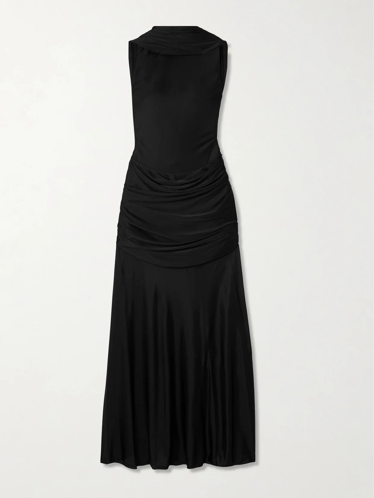 Cut from soft jersey for a figure-skimming fit, Loewe's gown is designed with Grecian-inspired draping and has an alluring open back. Finish your look with standout accessories such as oversized earrings and a sculptural cuff - keep everything gold-tone to match the signature 'Pebble' embellishment