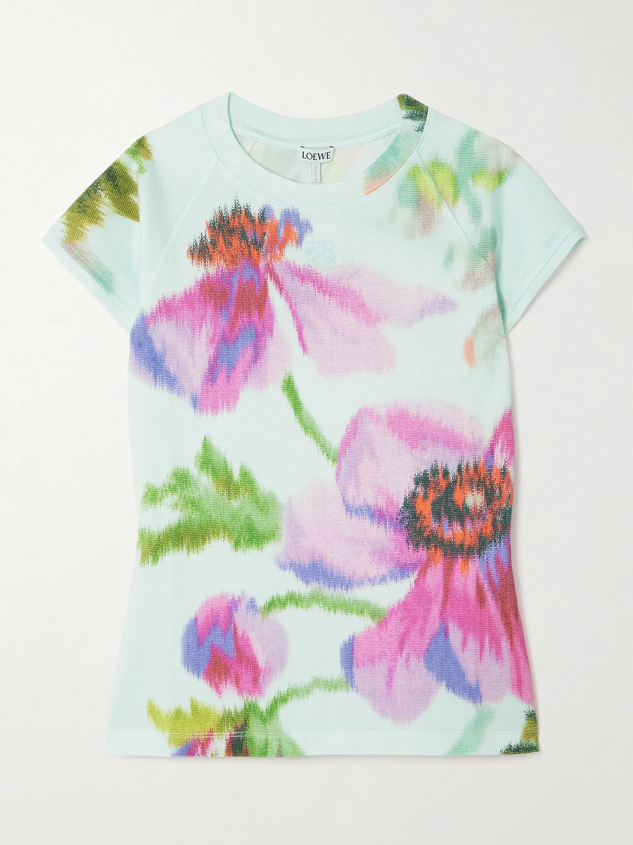 Loewe's T-shirt is made from cotton-blend jersey and printed with a blurred floral pattern. It has raglan sleeves and is embroidered with the signature 'Anagram' logo on the chest.