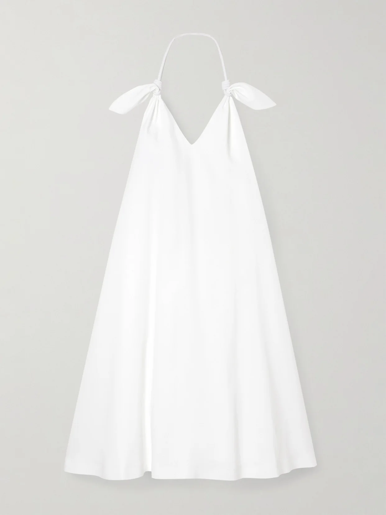 Flamenco Knotted Leather-trimmed Voile Halterneck Mini Dress