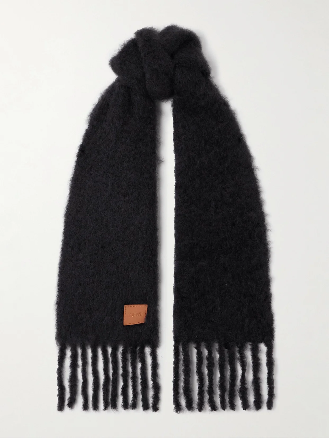 Loewe's scarf is crafted from a wonderfully cozy blend of mohair with touches of wool. It's finished with delicate fringing and the house's logo leather patch at the ends.