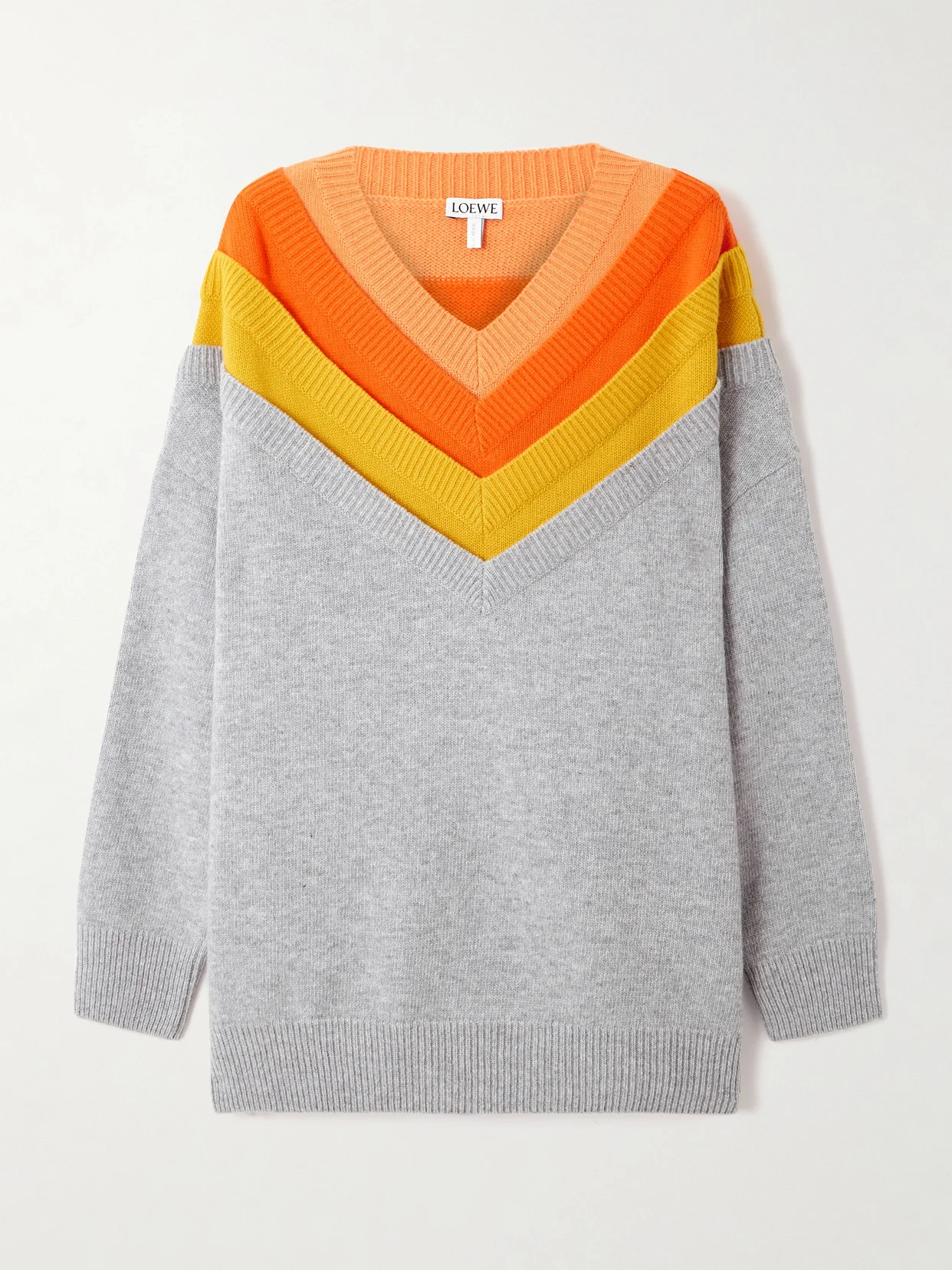 Loewe's sweater is detailed with layered V-necklines in warm, sunshine tones. It's been knitted in Italy from certified wool-blend and has a relaxed fit with dropped shoulders. Wear yours with jeans or leggings. Lower-Impact Materials. This product is made using at least 50% lower-impact materials or ingredients. Find out more about our NET SUSTAIN criteria here.