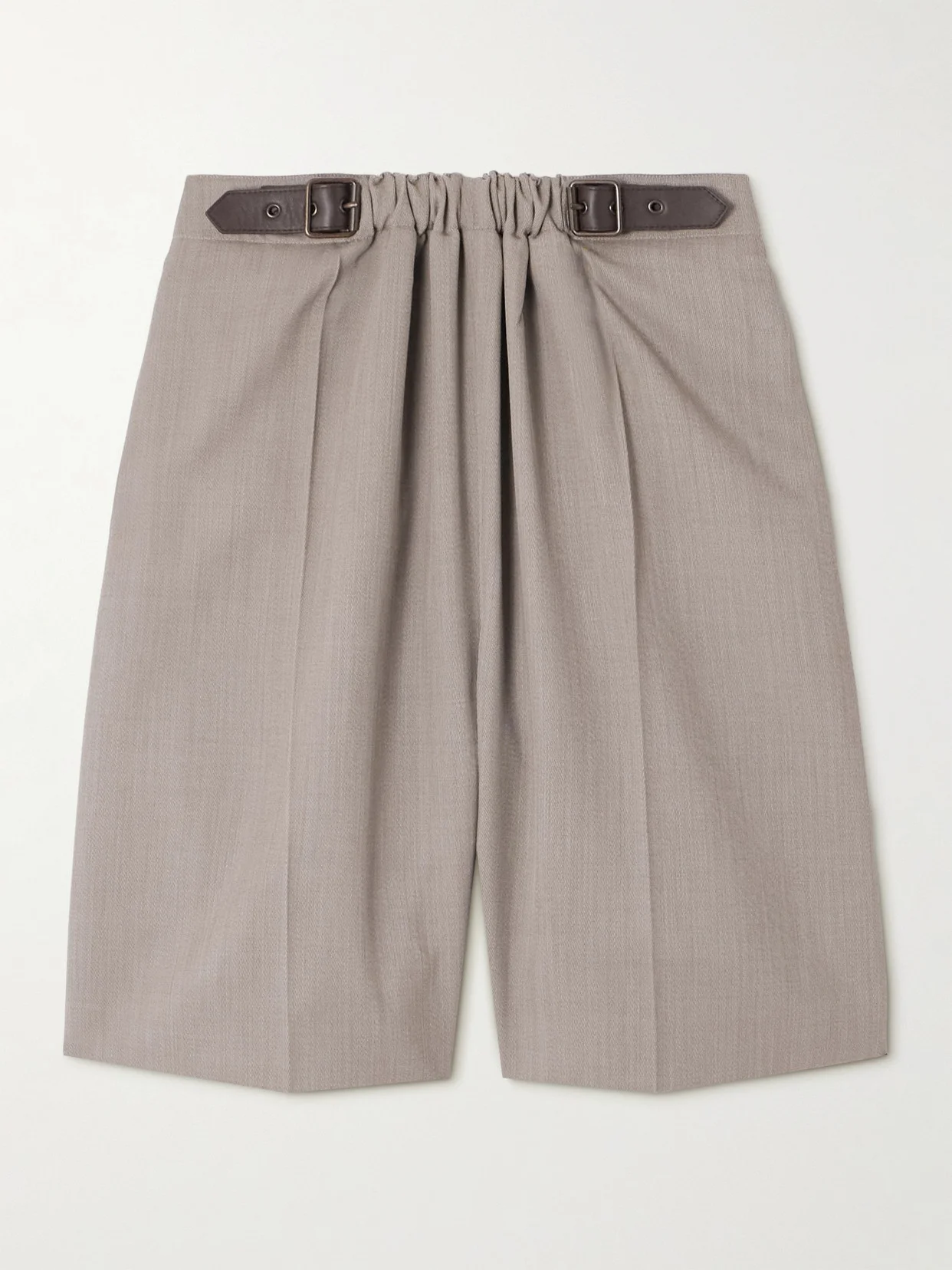 Loewe's shorts are detailed with buckled leather tabs that, at first glance, resemble a belt threaded through the waist. They're made from wool-twill and gathered at the front for subtle volume.