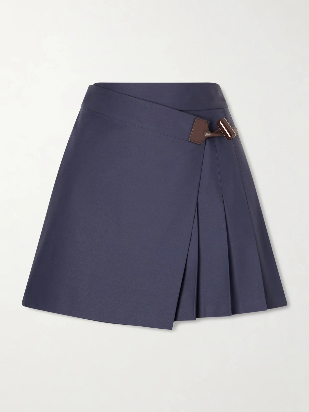 Pleated Leather-trimmed Cotton-blend Mini Skirt