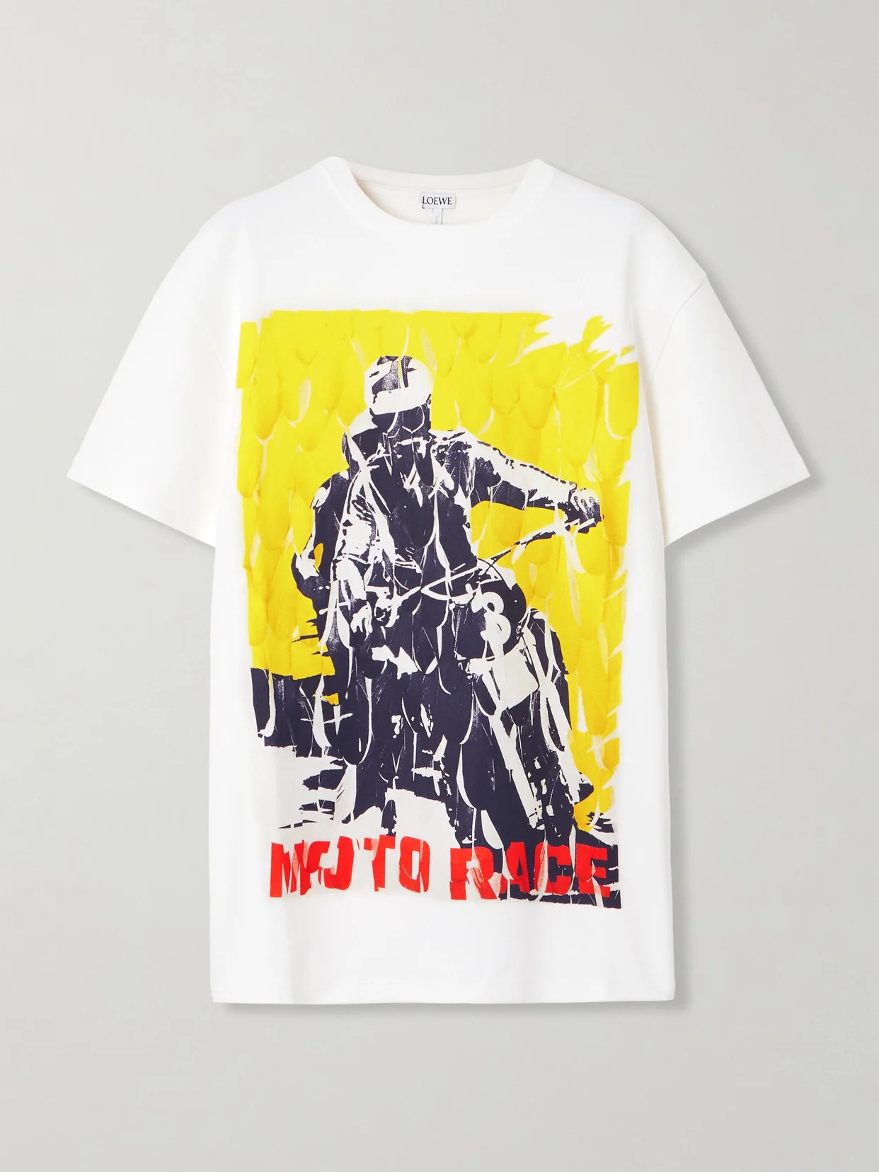 The print on Loewe's T-shirt resembles vintage sporting posters - it's designed in bold colors with block lettering and an image of a motorcyclist in action. It's cut from soft cotton-blend jersey and has a relaxed fit with a classic crewneck.