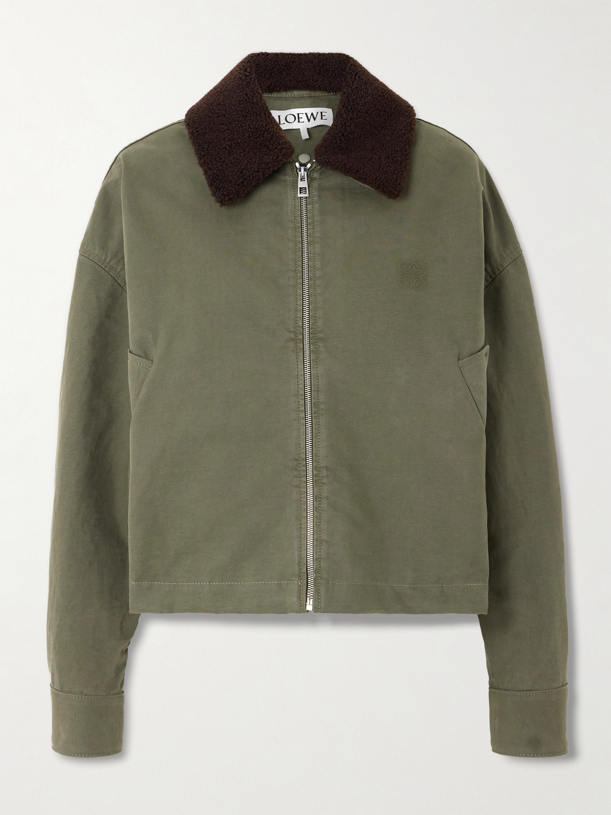 Blending elements of chore jackets and flight styles, Loewe's design is made from cotton-drill and topped with a detachable shearling collar. It has a relaxed fit and is subtly detailed with the 'Anagram' logo at the chest. You can remove the lining, making it ideal for multiple seasons.