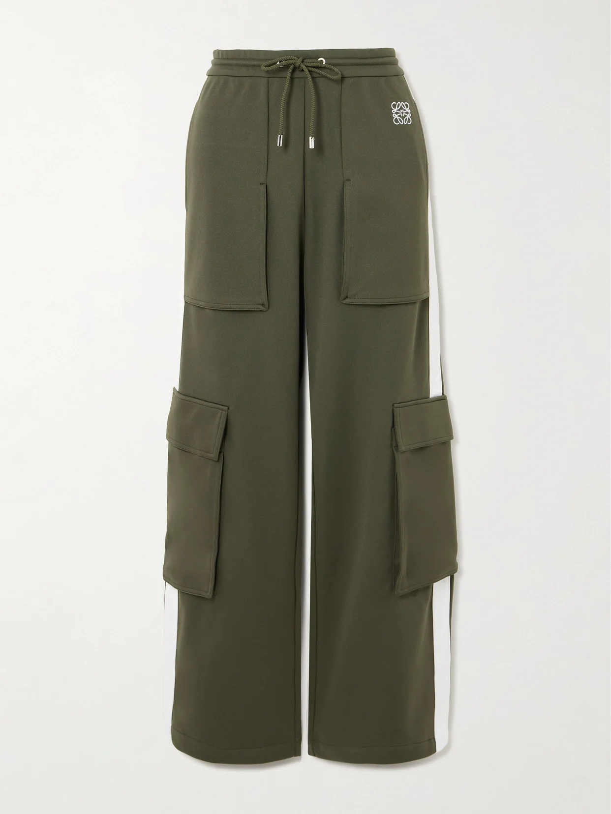 Loewe's cargo pants are fitted with boxy pockets to embody a classic utilitarian feel. They're cut from tech-jersey and have straight legs accentuated with contrasting stripes along the outer seams. The signature 'Anagram' logo is embroidered at the waist.