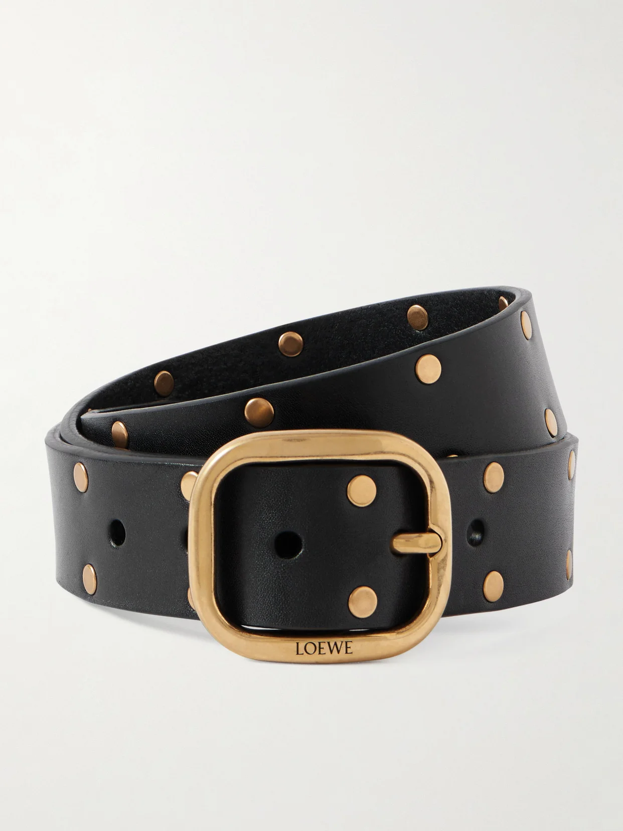 Loewe's belt is made from leather and detailed with gold-tone studs throughout. The squared buckled is engraved with a discreet logo.
