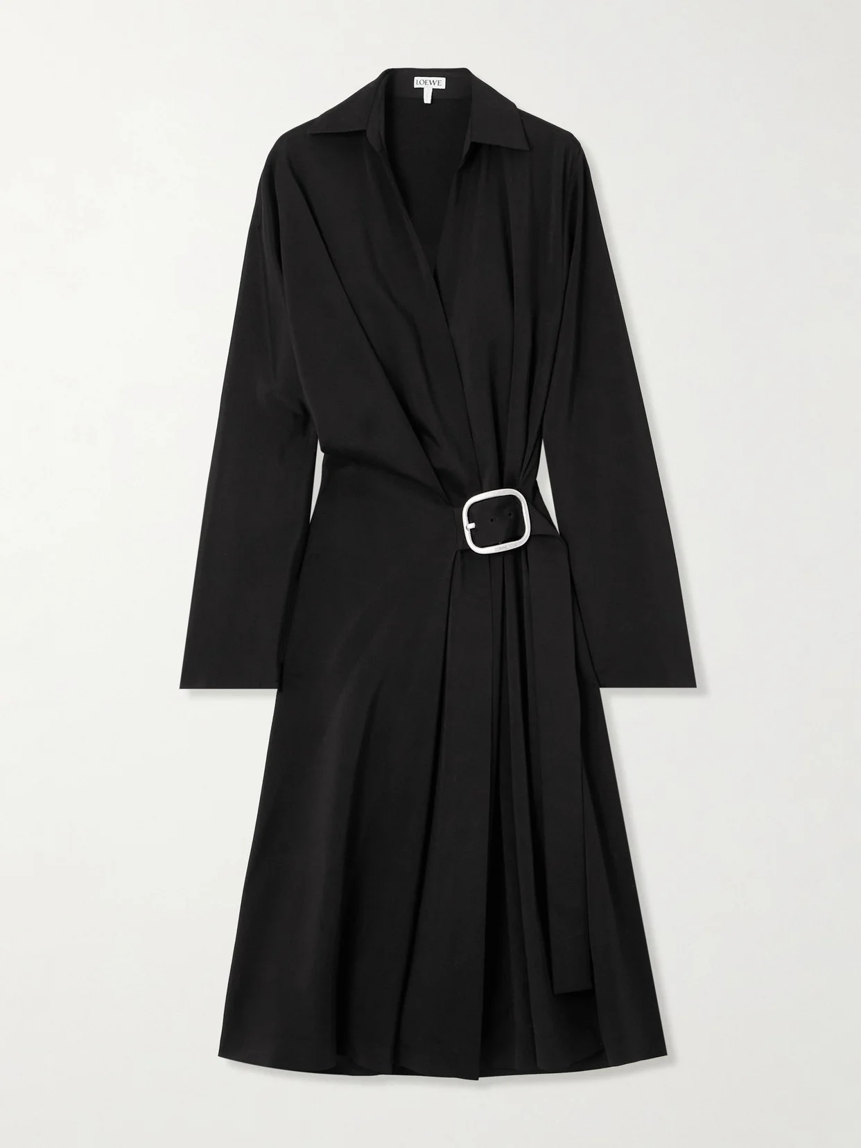 Timeless and elegant, Loewe's dress is gathered at the front to create a wrap effect and is defined by an oversized buckle. It has a smooth, fluid drape and a roomy fit.