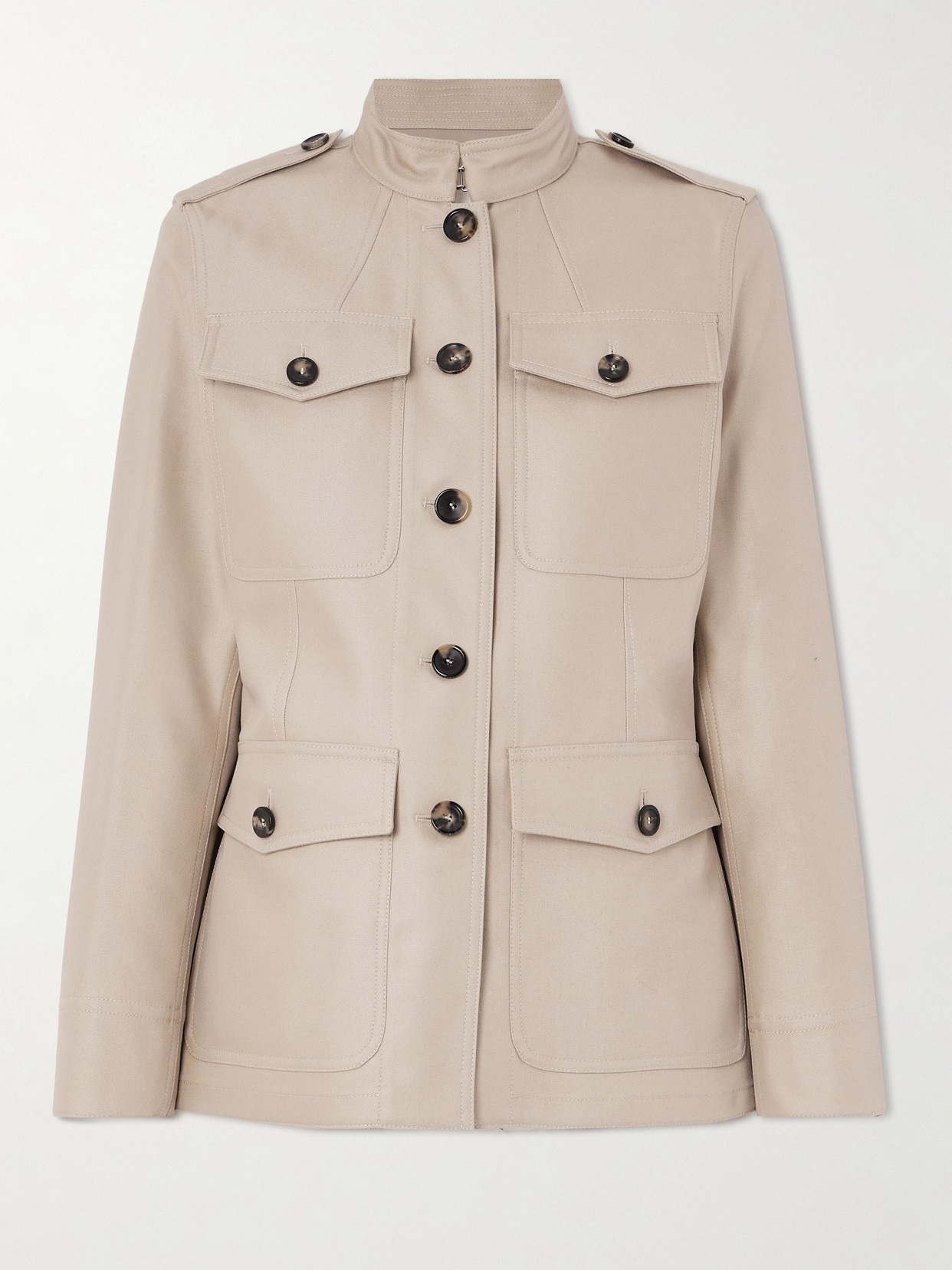 Loro Piana is synonymous with fine Italian craftsmanship. Tailored from cotton and silk-blend twill, this 'Ashley' jacket has hallmarks of a classic trench - note the shoulder epaulettes, hook-fastening stand collar and utilitarian flap pockets. It looks especially chic styled with the matching pants.