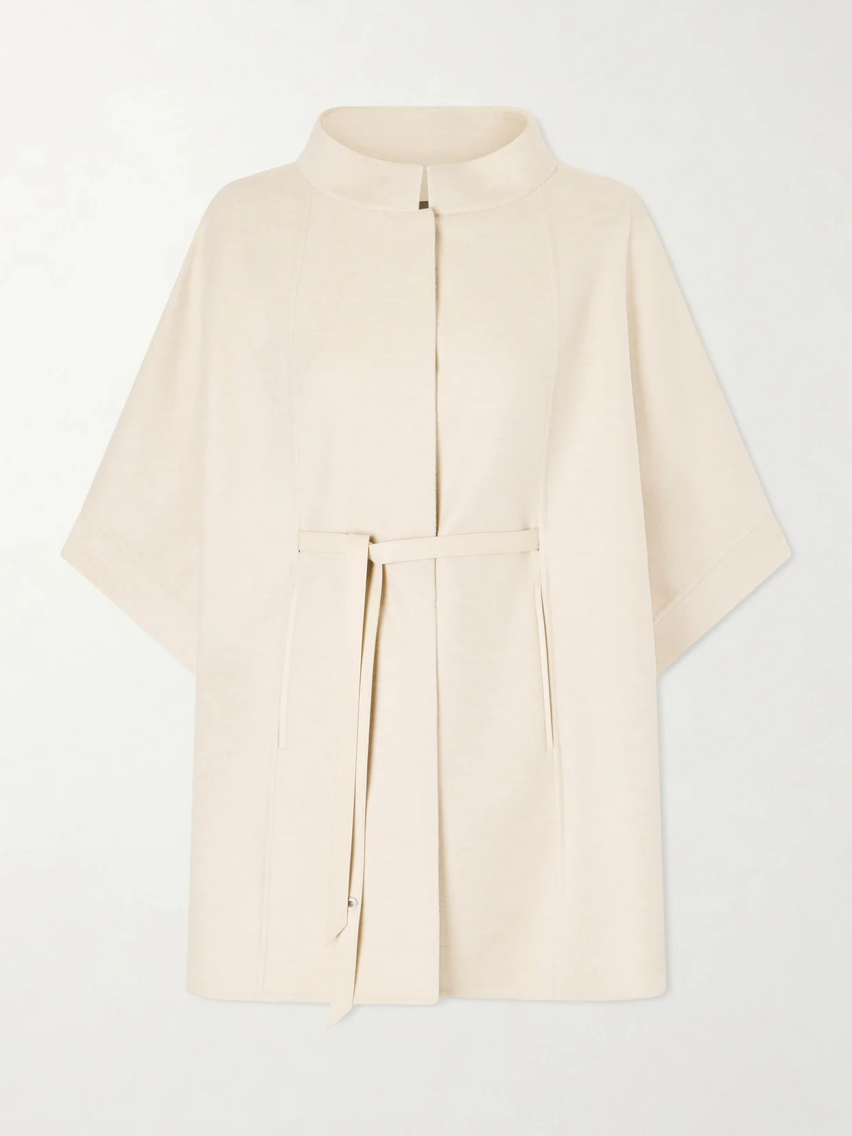 Loro Piana describes its design process as "a lifelong commitment to perfection" - the brand has long been recognized for its fine craftsmanship and use of luxurious natural materials. Designed with a mandarin-style collar, this cape is made from incredibly soft cashmere and traced with supple leather trims. Use the coordinating belt to cinch the loose shape.