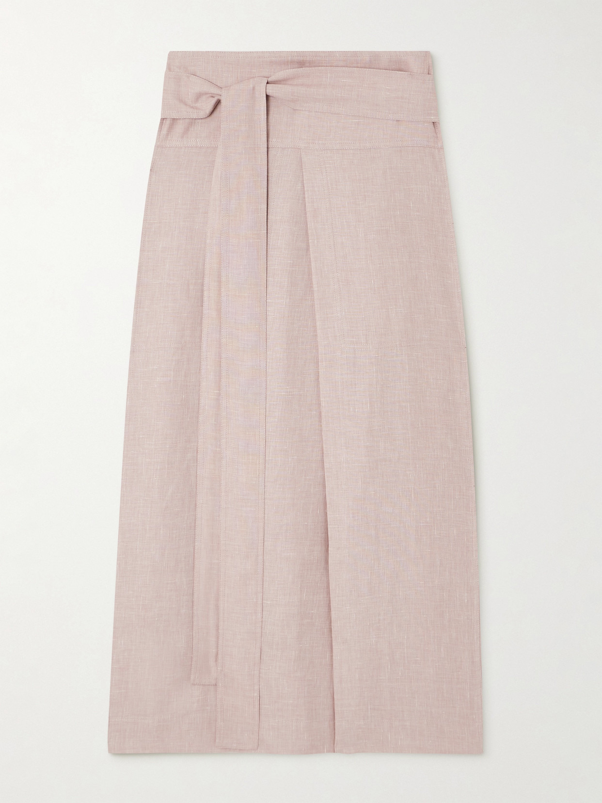 Belted Linen, Wool And Silk-blend Midi Skirt