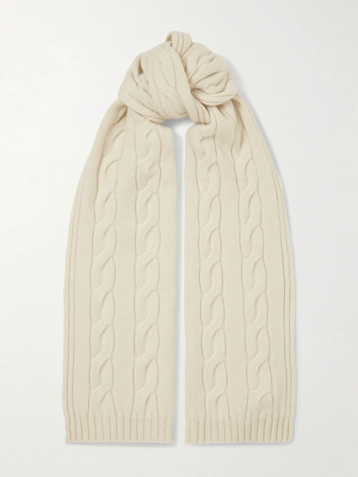 Bundling up in Loro Piana's scarf feels like a moment of quiet indulgence, not just a necessity. It's knitted from soft baby cashmere using a mix of rib and cable stitches for a textural finish.