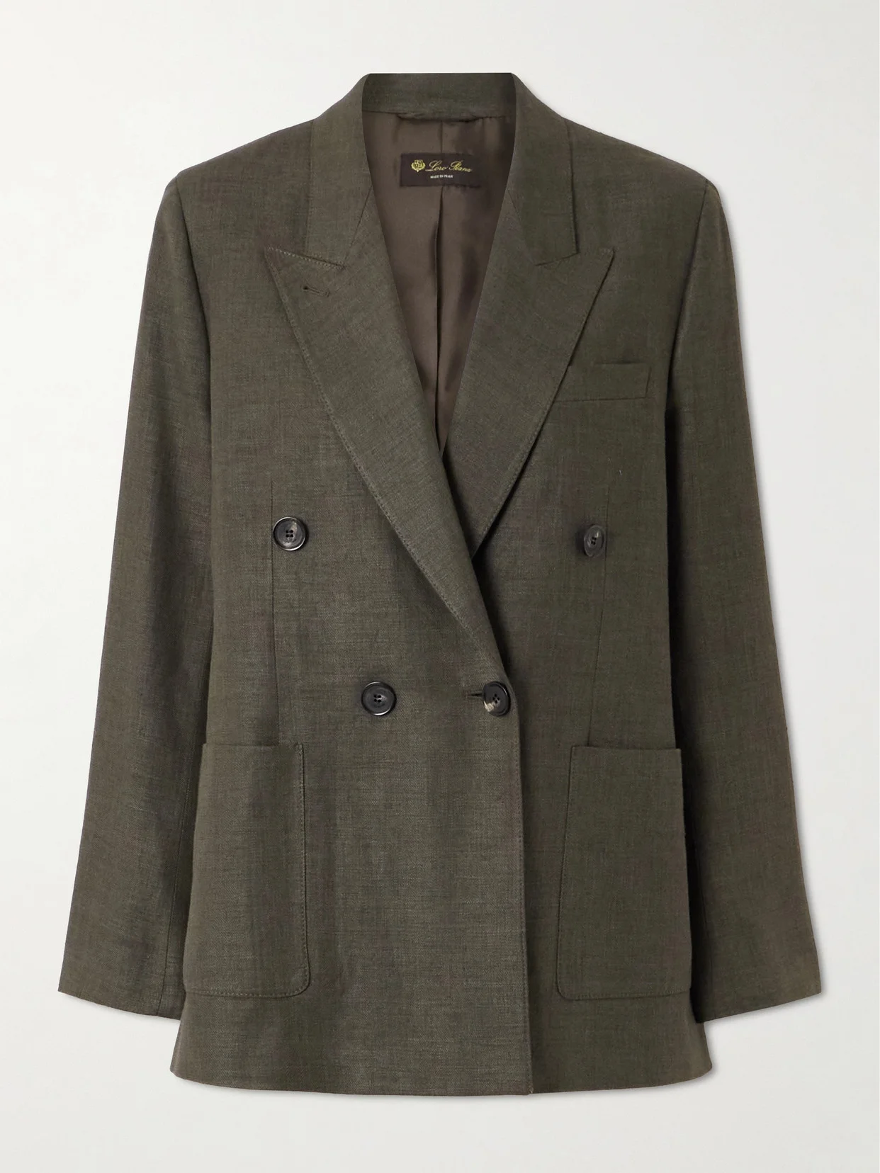 Loro Piana's sharp tailoring is the result of fine Italian design and craftsmanship. Made from breathable linen and wool-blend, this 'Genny' blazer has a double-breasted front and padded shoulders for structure. Wear yours with tonal pants and loafers.
