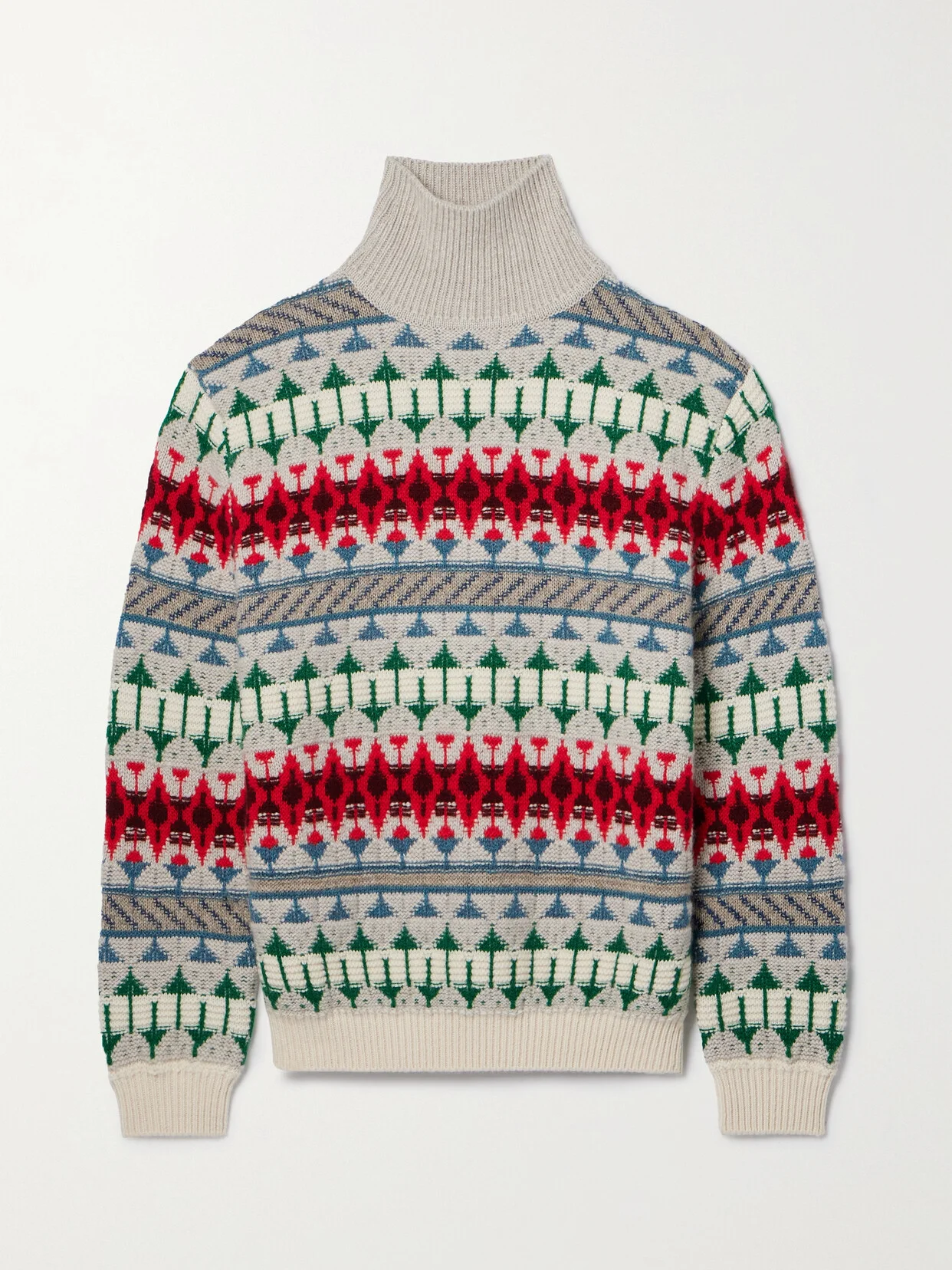 You're sure to get into the festive spirit with Loro Piana's 'Holiday Noel' sweater. Made from sumptuous cashmere, it's jacquard-knitted with a jolly, vintage-inspired Fair Isle motif and has a rolled turtleneck.