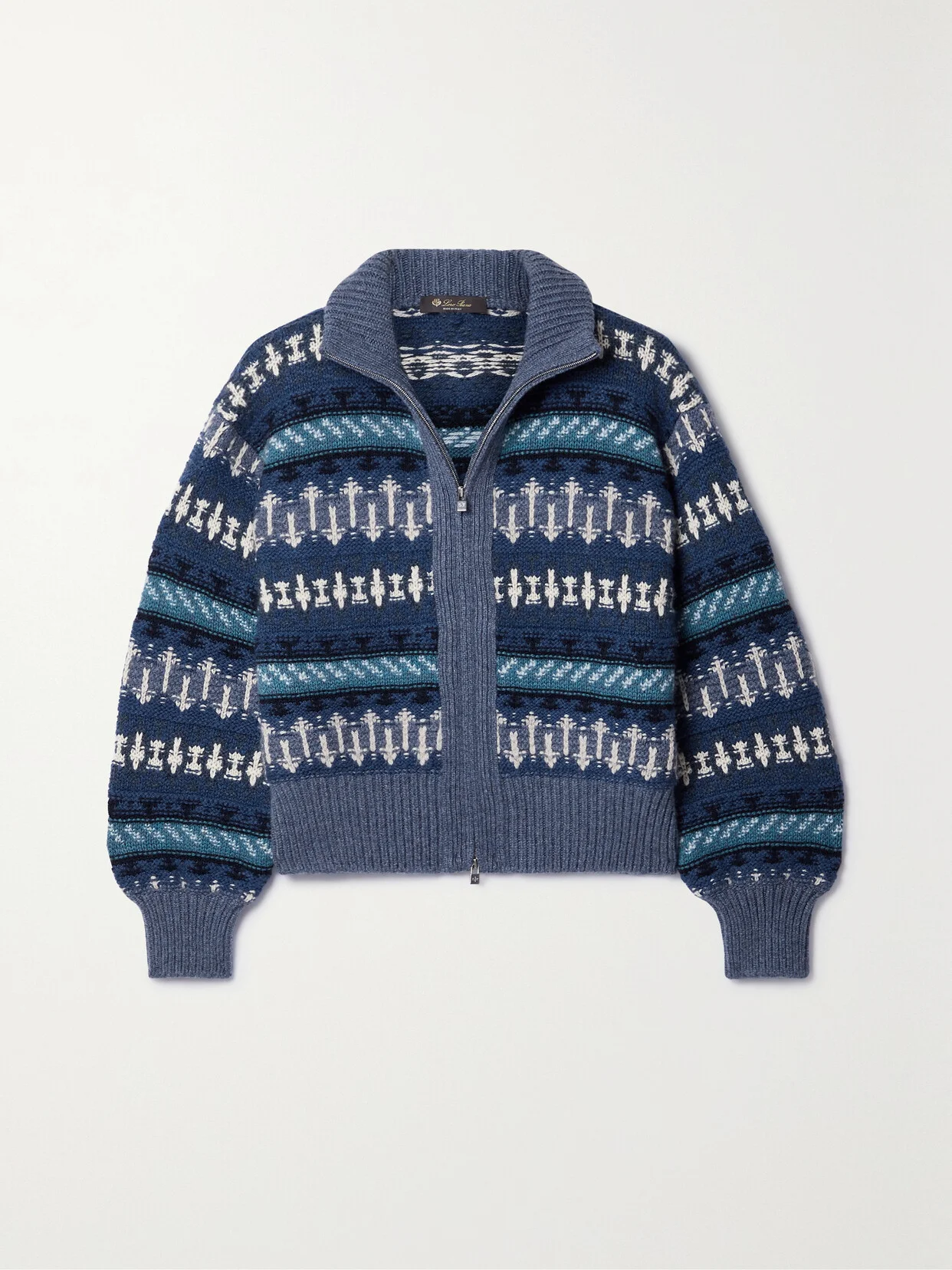 Loro Piana's 'Holiday Noel' cardigan is jacquard-knitted with a festive Fair Isle pattern inspired by vintage styles. Made from plush cashmere, it has a ribbed mock neck and a two-way zip fastening, so you can easily adjust the fit trims. Layer yours over a simple tee.