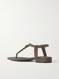 Loro Piana's 'Mindil' sandals are a perfect summer investment. Crafted in Italy from suede, they have a square-shaped pendant with gold-tone edges atop the front strap. They'll work well with dresses and denim alike.