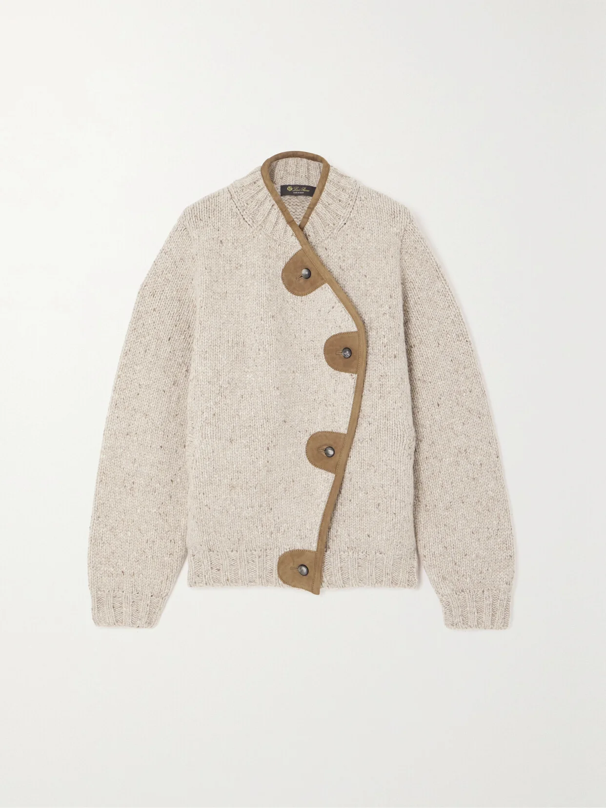 Newcastle Asymmetric Suede-trimmed Wool And Cashmere-blend Cardigan
