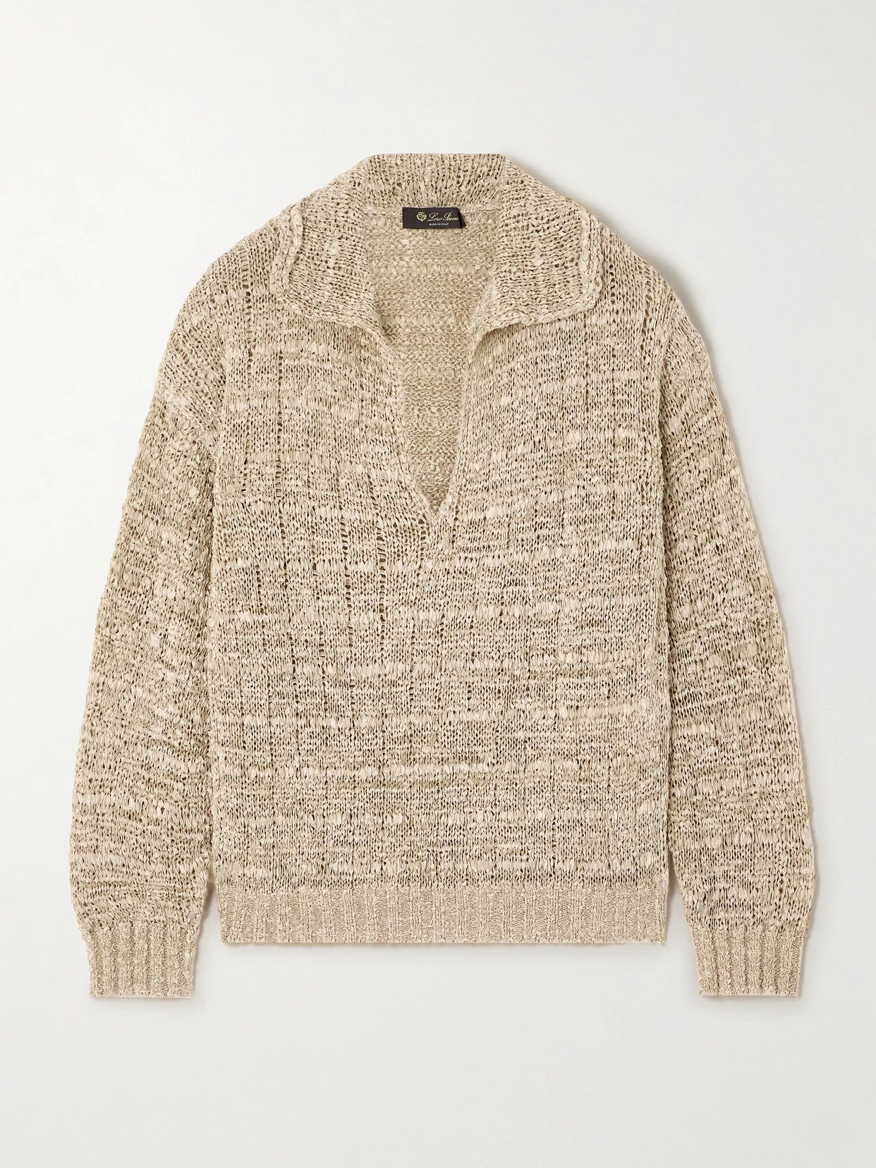 Loro Piana's sweater has been knitted in Italy from the finest silk - using an open stitch, it's wonderfully light and airy. It's finished with subtle blouson sleeves and an open collar. Use the deep V-neckline to frame your favorite pendant.