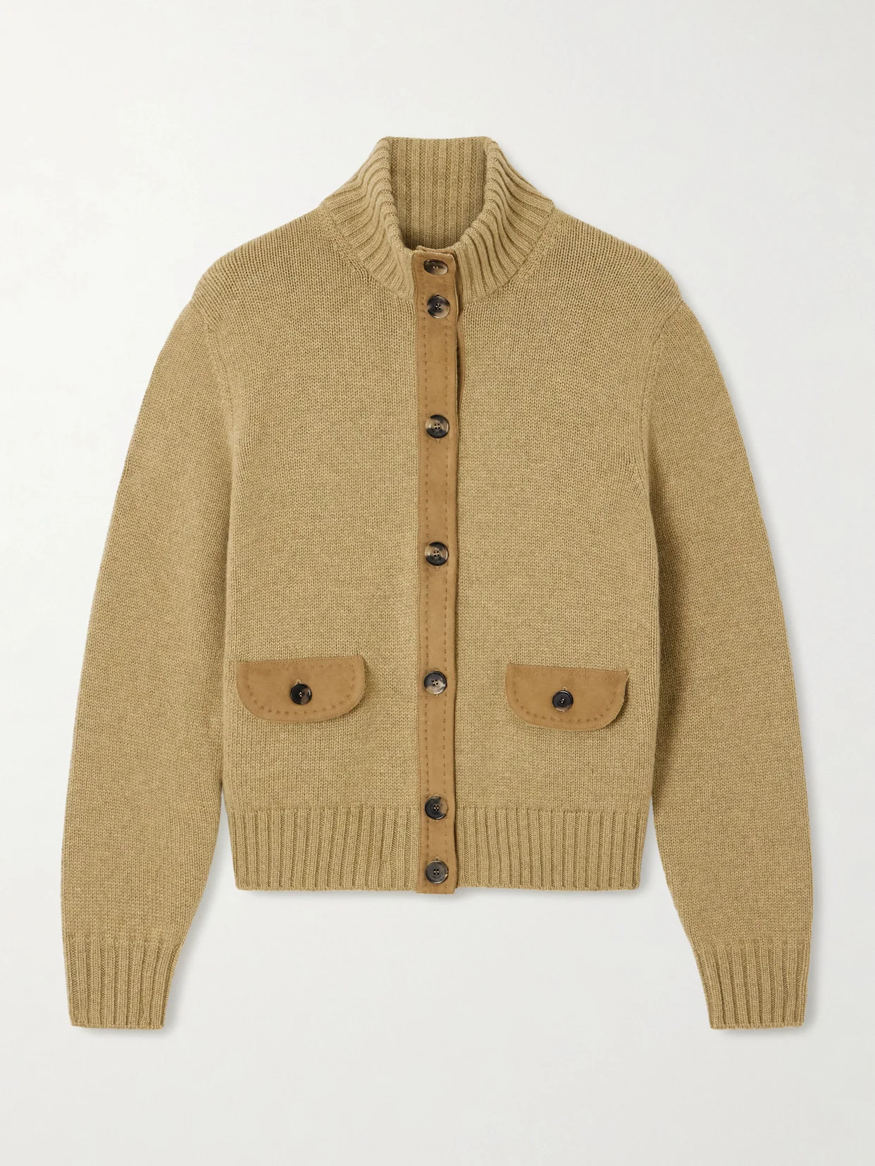 Loro Piana's 'Parksville' cardigan is made from baby cashmere that the brand describes as a 'cloud-soft whisper of unparalleled luxury'. Incredibly soft and naturally insulating, it has ribbed edges and suede trims, including elbow patches for a classic look and durability.