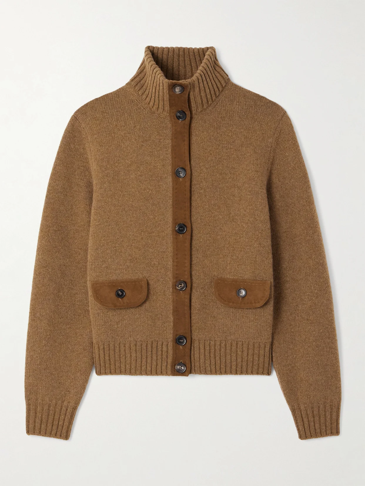 Loro Piana's 'Parksville' cardigan is made from baby cashmere that the brand describes as a 'cloud-soft whisper of unparalleled luxury'. Incredibly soft and naturally insulating, it has ribbed edges and suede trims, including elbow patches for a classic look and durability.
