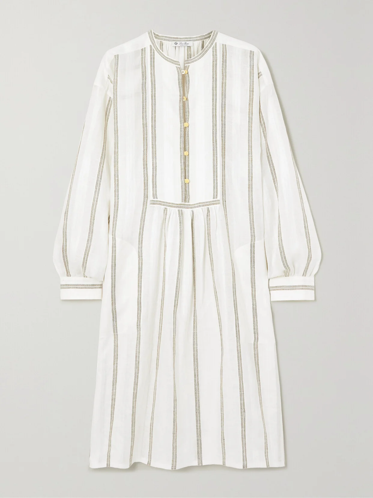 Made from breathable and lightweight linen, Loro Piana's midi dress is perfect for sun-drenched days and balmy evenings. It's patterned with olive-green stripes and pleated to create a flowy drape.