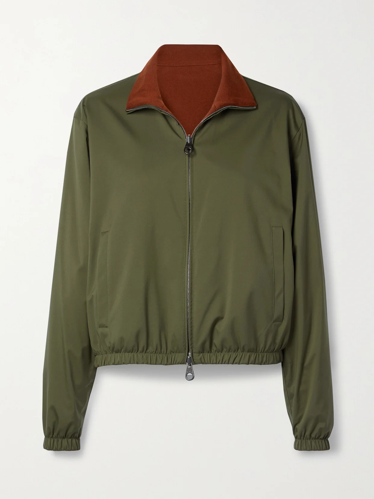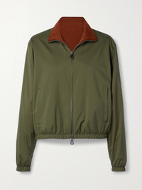 Loro Piana's jacket is reversible, so you can wear it with the army-green shell or brick cashmere side facing out. The versatile style is designed for a relaxed fit with elasticated trims and slant pockets. The label's signature Storm System® technology will keep you dry and warm.