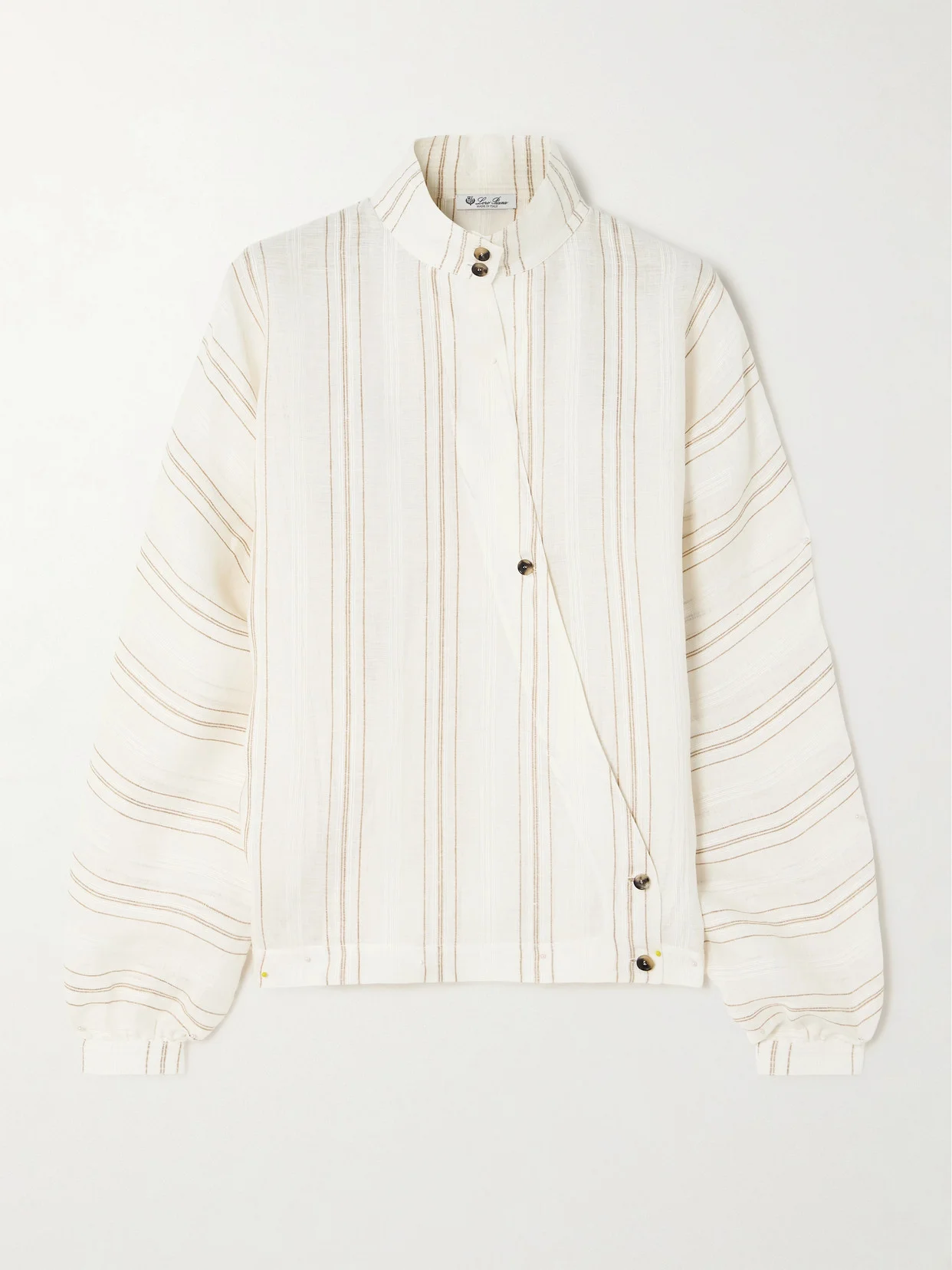 The signature linen used to make Loro Piana's 'Shay' blouse has been milled, cut, and finished at the label's headquarters in Solomeo, Italy. It's prized for its lightweight and breathable handle, and printed with uniform stripes. The voluminous batwing sleeves and asymmetric front enhance the effortless feel.