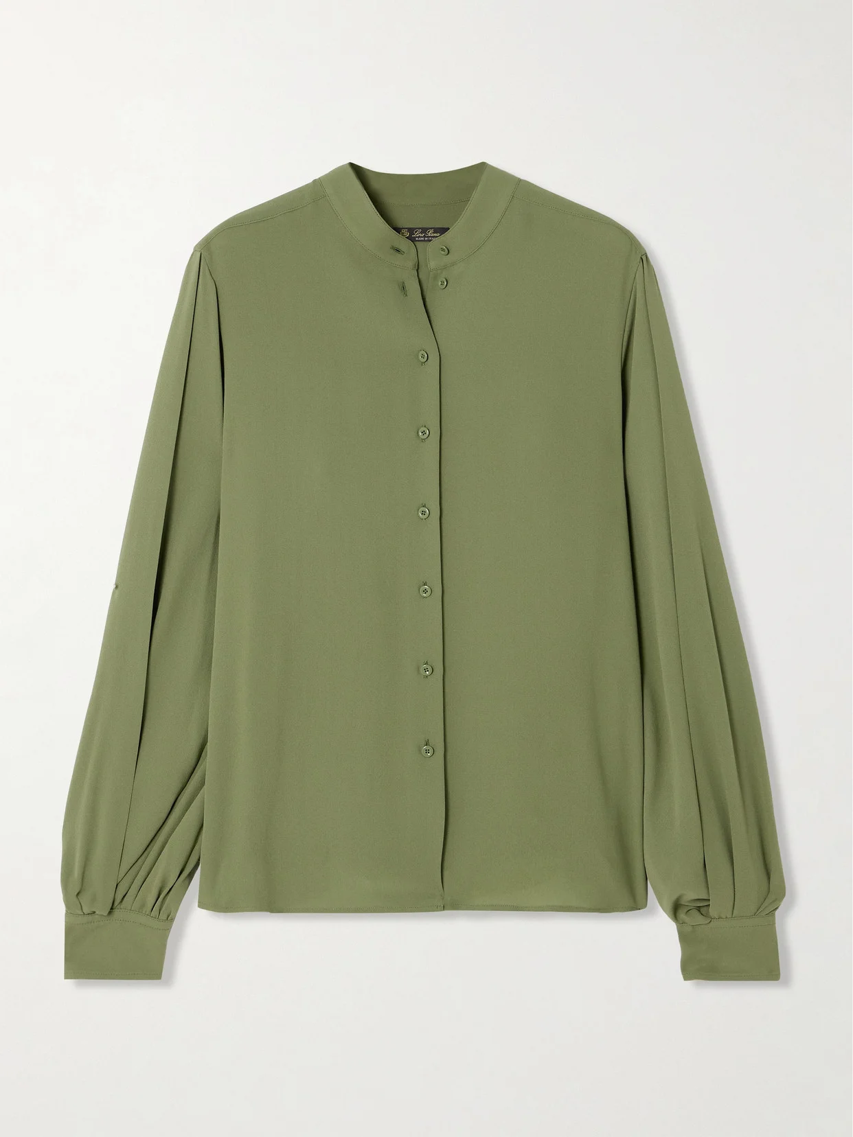 Loro Piana's 'Sheryl' blouse has been made in Italy from silk-crepe in a versatile green shade. Designed with a relaxed mandarin collar, it's cut for a loose fit enhanced by airy sleeves and a back pleat. Wear yours with the brand's matching pants.
