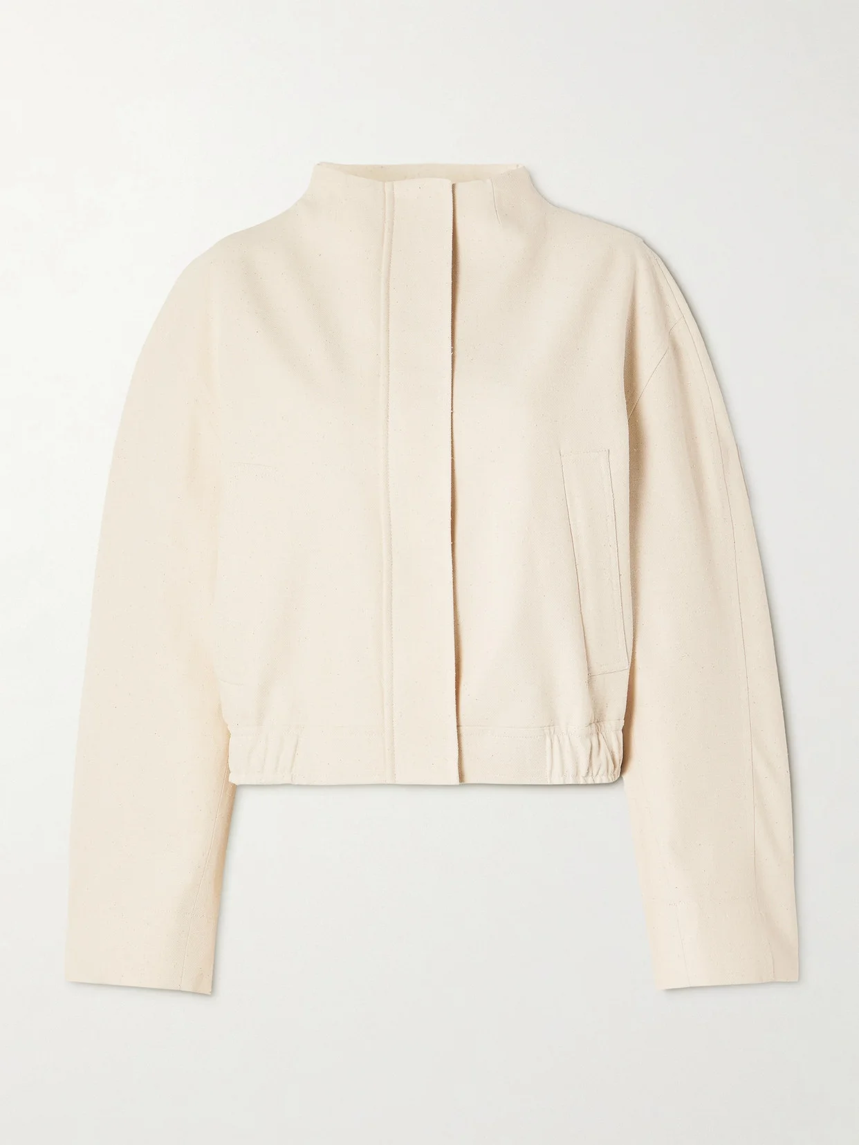 Loulou de Saison's 'Bago' jacket "finds balance in contrast" - it's cut for a boxy yet rounded shape that toes the line between the masculine and feminine. Designed in Paris, it's made from cotton-blend twill that has a naturally bobbly texture and a cropped hem that complements the coordinating high-rise pants. Lower-Impact Materials. This product is made using at least 50% lower-impact materials or ingredients. Find out more about our NET SUSTAIN criteria here.