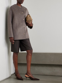 Loulou de Saison's collections feature covetable staples embodying "authentic French simplicity". This 'Dunne' jacket is made from an insulating wool and cashmere-blend in an oversized shape with a collarless neckline and dropped shoulder seams. Slip it on with tailoring.