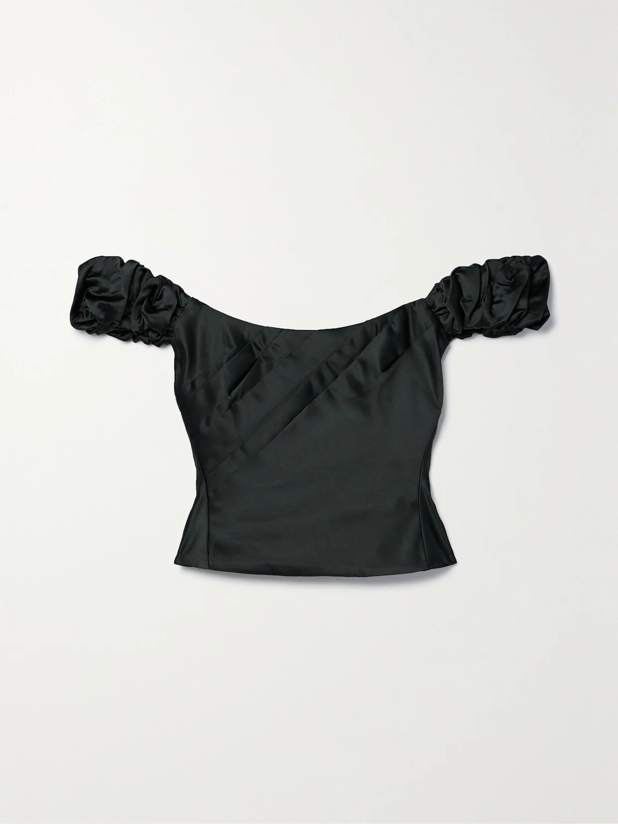 Ileana Off-the-shoulder Cropped Pleated Satin Top