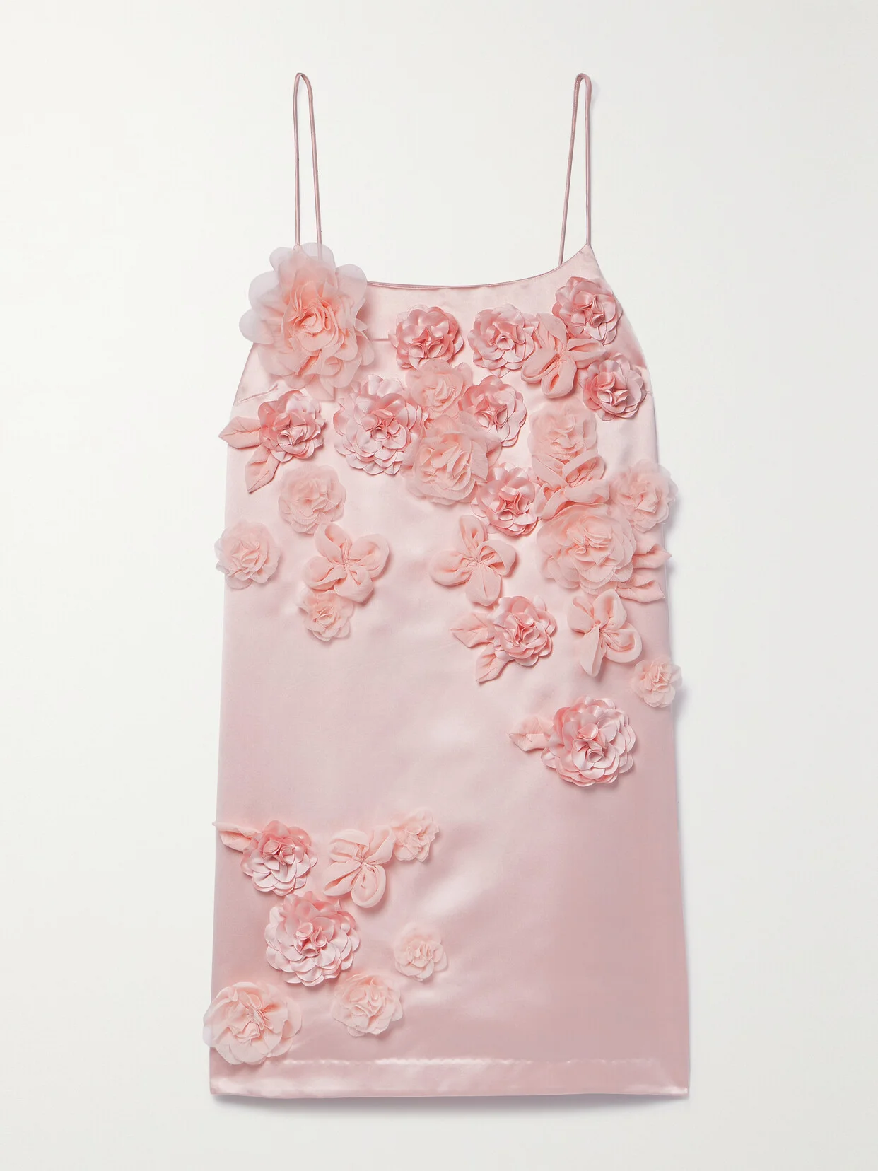 LoveShackFancy's 'Mensa' dress is part of the label's sweet, 'Sugarplum Fairy'-inspired Resort '24 collection. Made from satin in a sweet baby-pink hue, it's hand-appliqued with 3D rosettes and cut for a figure-hugging fit.