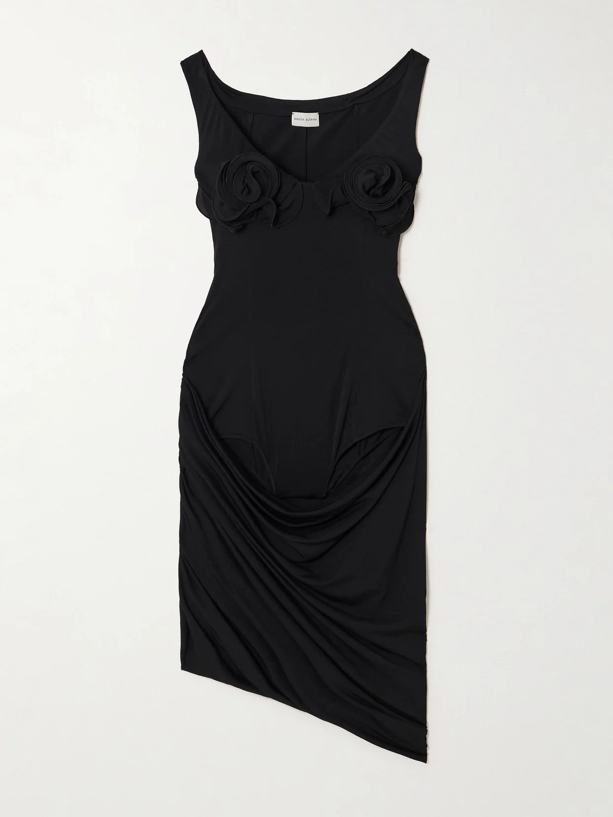 Magda Butrym's rose applique exudes '80s romance. Made from stretch-jersey, this sultry dress has corset-style boning through the bodysuit and an artfully draped asymmetric skirt. Wear yours with kitten heels and the label's pearl earrings.