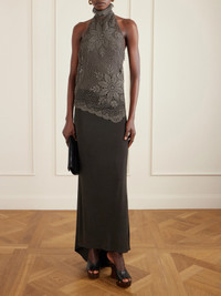Magda Butrym's crochet pieces are made by a team of skilled craftspeople in Poland. This cotton top has a chic high halterneck and an asymmetric scalloped hem. Underpin yours with a tonal bandeau.