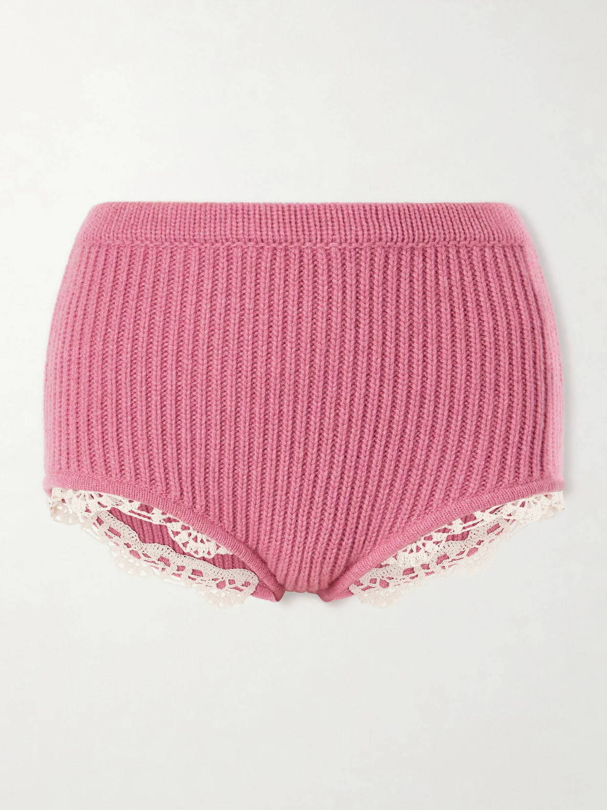 Magda Butrym's micro shorts have a lingerie feel with their scalloped crochet trim. Knitted from soft cashmere, they have a ribbed handle for added texture.
