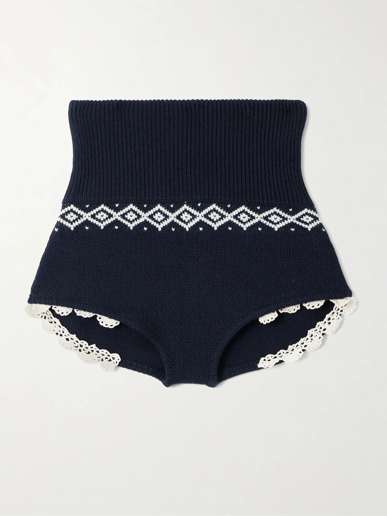 Crochet-trimmed Ribbed Wool-jacquard Shorts