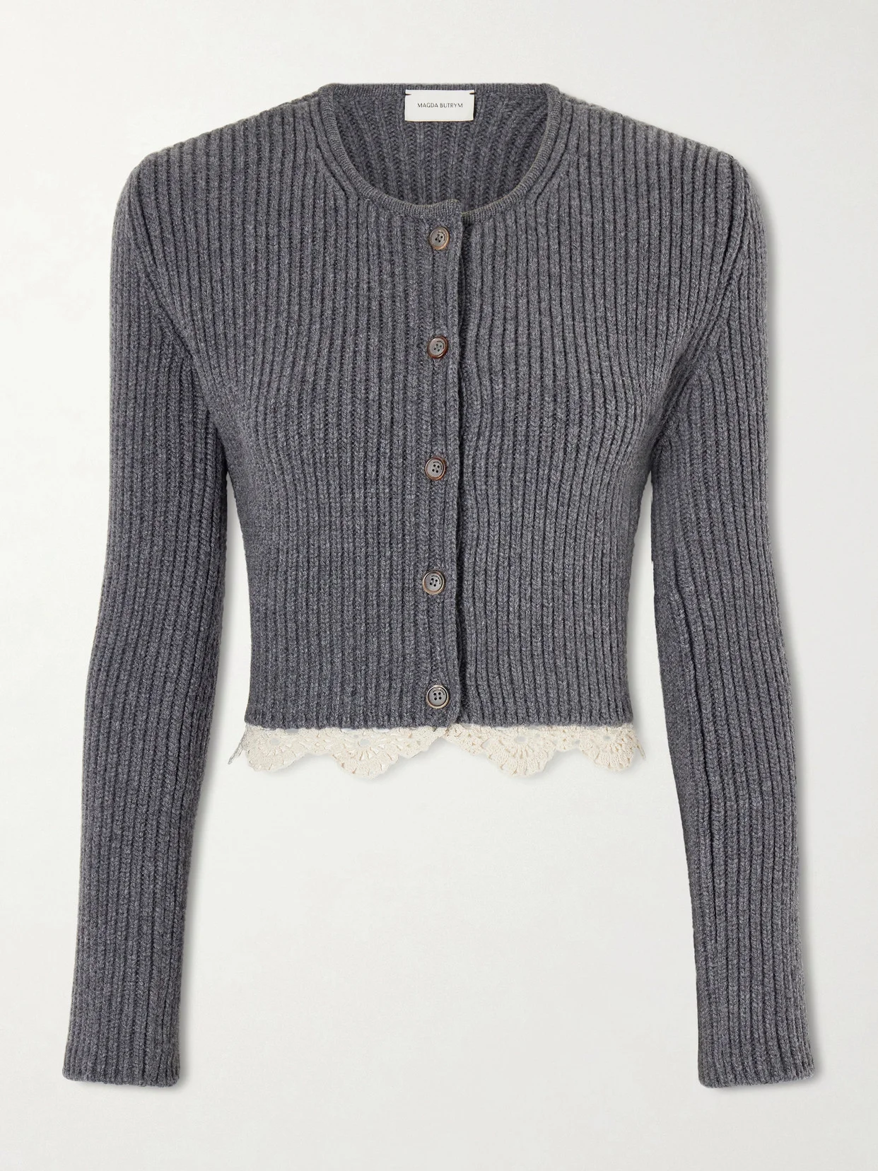 Cropped Lace-trimmed Ribbed Wool Cardigan