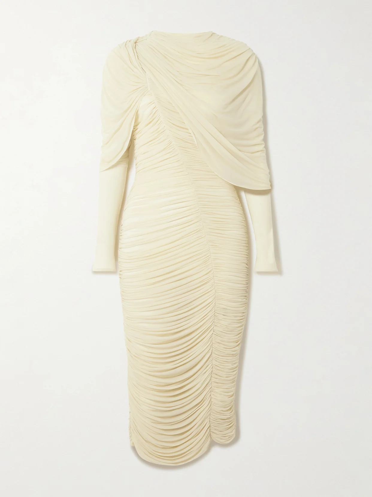 Stars like Margot Robbie and Natalie Portman are fans of Magda Butrym's romantic, contemporary dresses. This one is made from stretch-tulle that's ruched and has elegant cape-effect draping across the shoulders. Wear yours with point-toe pumps and statement earrings.