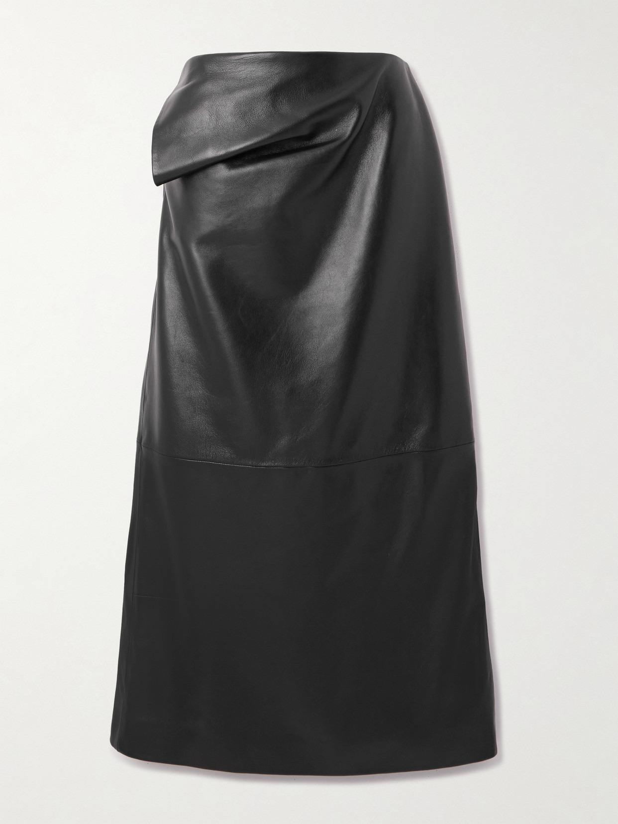 Magda Butrym's Fall '25 collection is equal parts romantic and rebellious. Worn on the runway, this skirt is made from smooth leather and sits low on the waist before falling to a subtle A-line hem. Slip your hands into the discreet pockets.